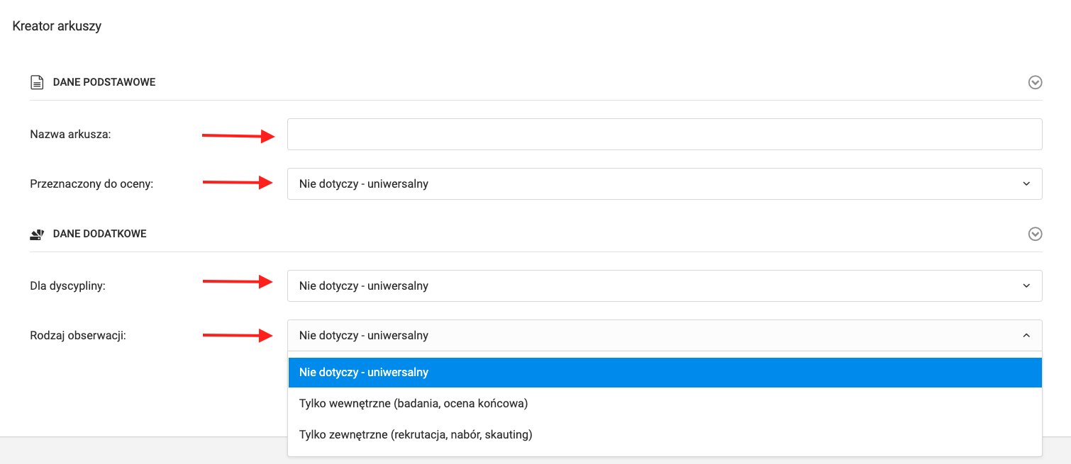Para llegar al creador de evaluaciones, selecciona las pestañas del menú izquierdo club evaluaciones y observaciones hojas asistente de hoja de evaluación. El primer paso para crear una nueva hoja es ingresar un nombre, luego elegir el tipo de usuario que va a ser evaluado. Puedes hacer una hoja de evaluación universal, de jugador, de entrenador o de empleado.